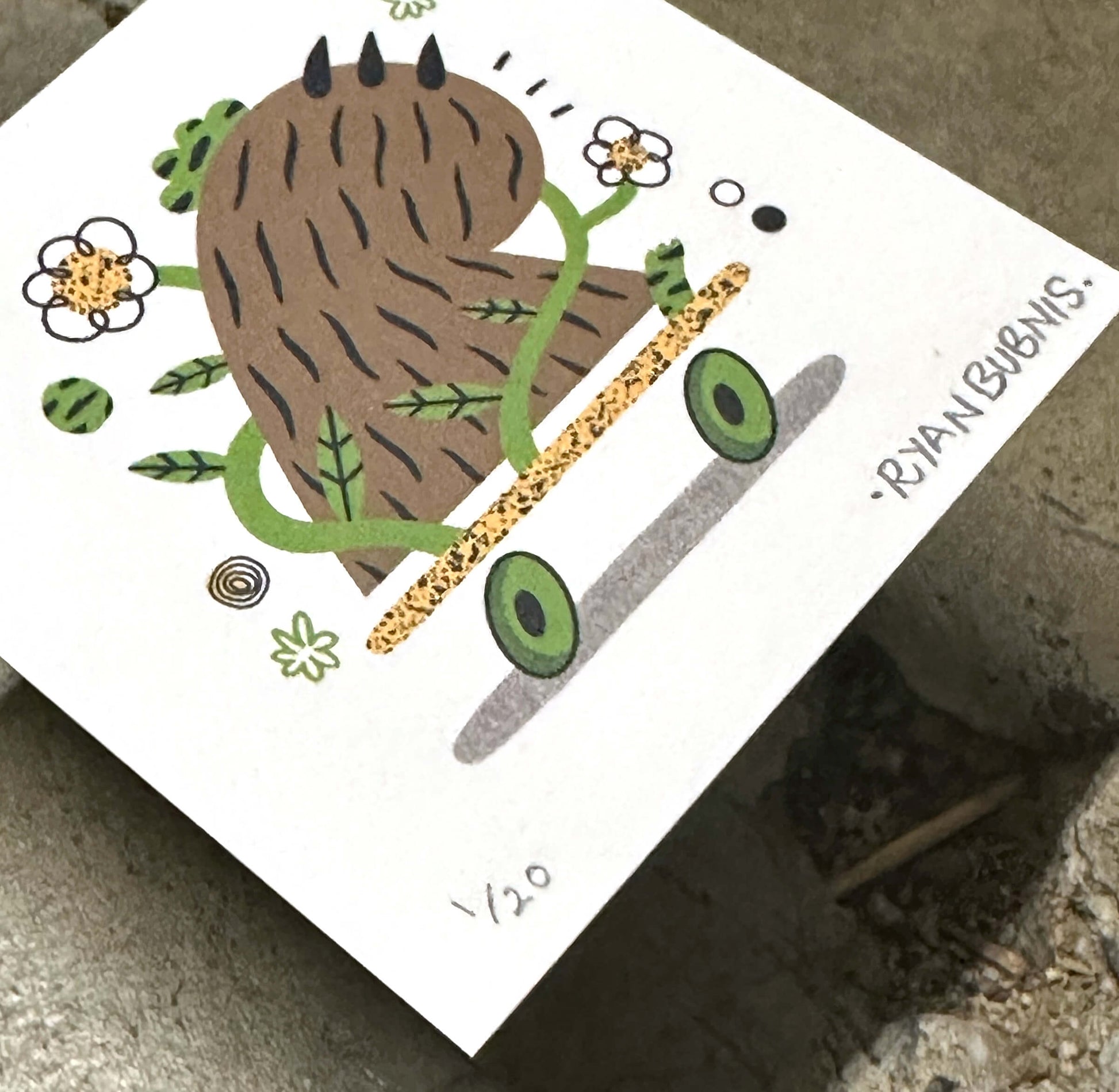 Signed and numbered, limited edition of 20. Size: 2.75" x 2.75" on nice card-stock weight paper.